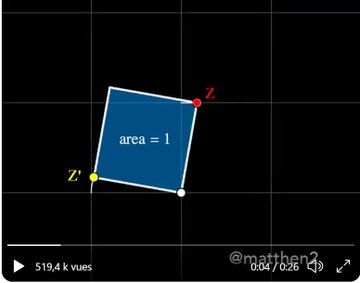 et P' son image d'affixe Z' par la transformation qui conserve un rectangle d'aire 1 et telle que $(\vec{OP},\vec{OP'})=\pi/2$.