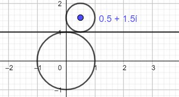 le premier auquel on s'intéresse a pour centre A tq $z_A=0,5+1,5i$ et pour rayon 0,5